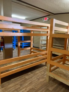 The huge kitchen is off the main hall, with two big fridges, two stoves, and a huge sink. It’s well stocked with everything you will need to cook and clean up afterwards. Tape and pen will be provided to label the food you need to keep cool. Please be mindful of space in the fridge so everyone gets some room!